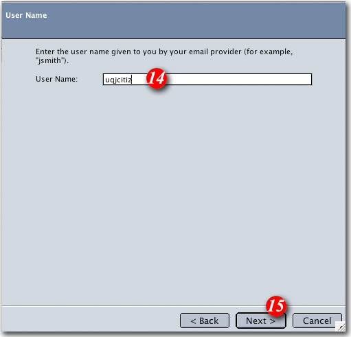 | 21)Enter your Email address and ensure that 'Use name and password' is ticked. |