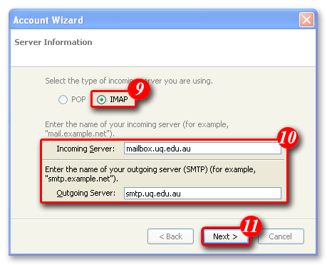 | 10)Enter 'mail.thesmithcircle.com' in the 'Incoming Server' field, and 'smtp.thesmithcircle.com' in the 'Outgoing Server' field. |